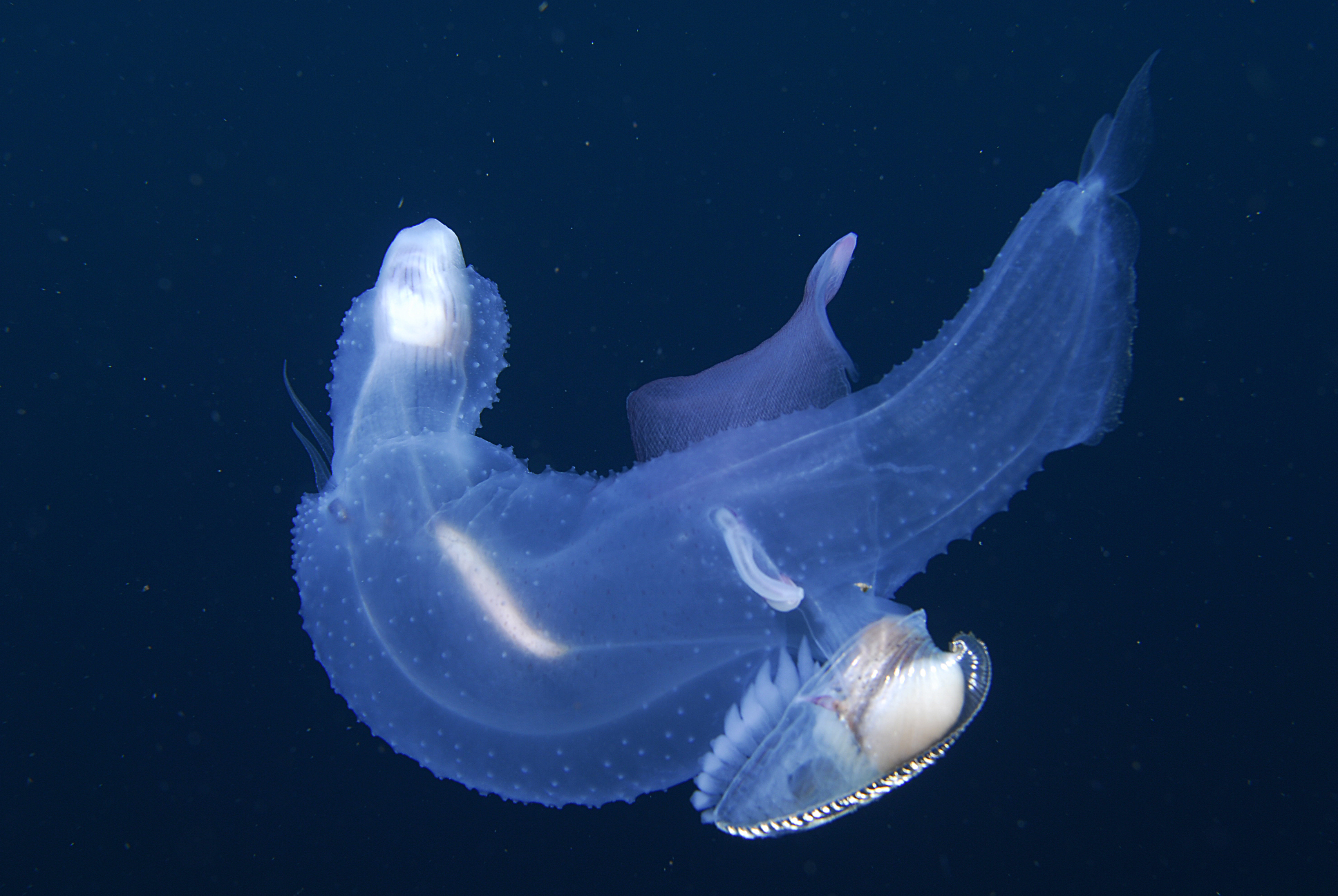 | Description | : | Quand l'animal est en position de nage, la coquille pend donc vers le bas à la manière d'une quille de bateau. L'animal avance ainsi à l'horizontale, la tête en avant, au moyen d'une nageoire ondulante en forme de crête dirigée vers le haut et fixée sur le pied. |