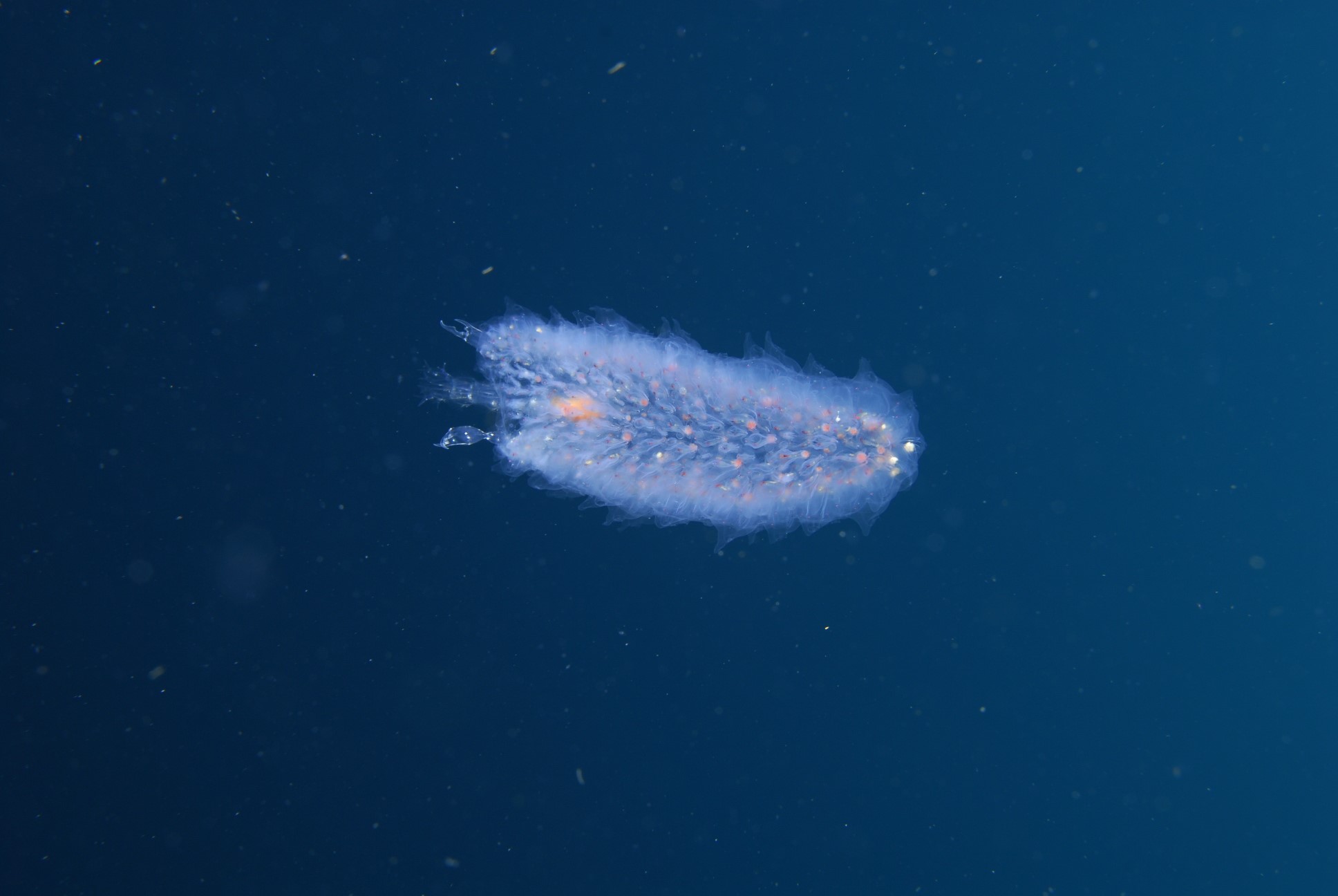 | Description | : | Les pyrosomes fréquentent normalement les grandes profondeurs. On pense qu'ils sont le plus abondants entre 800 et 1000 mètres. |